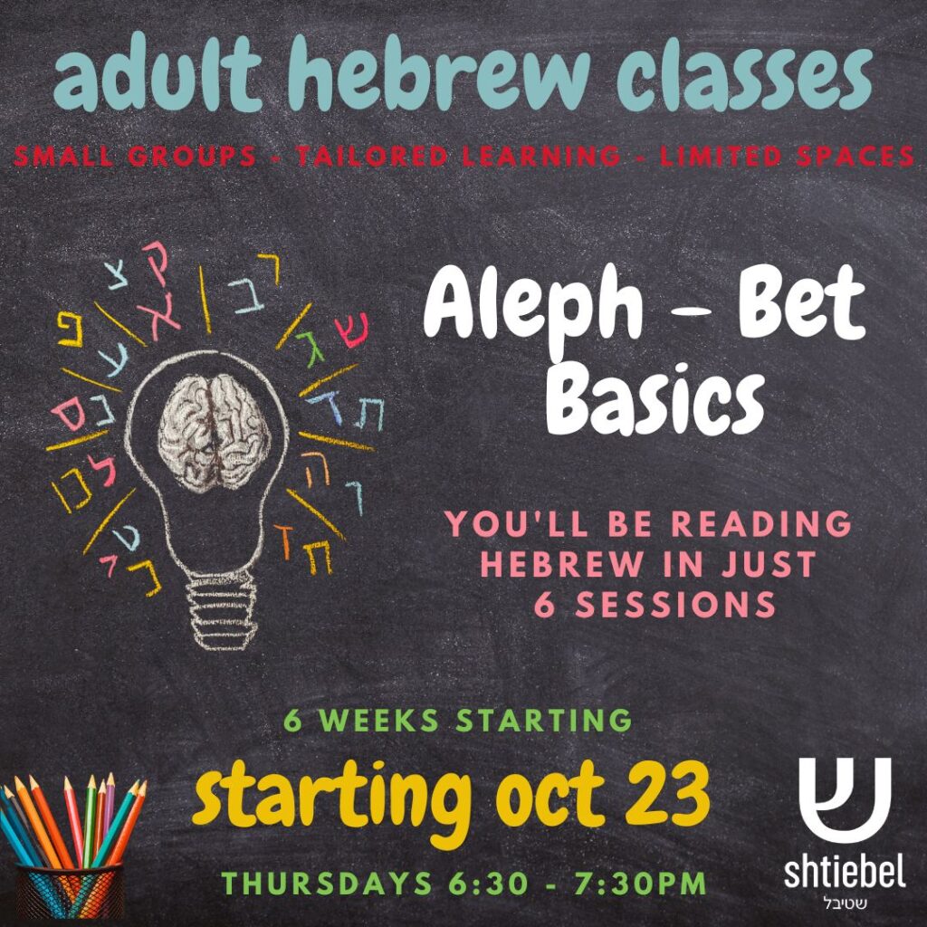 The program is designed for beginners to Hebrew reading. Together, we will consolidate recognition of Hebrew letters & vowels, and develop reading skills, culminating in reading the Shabbat blessings.