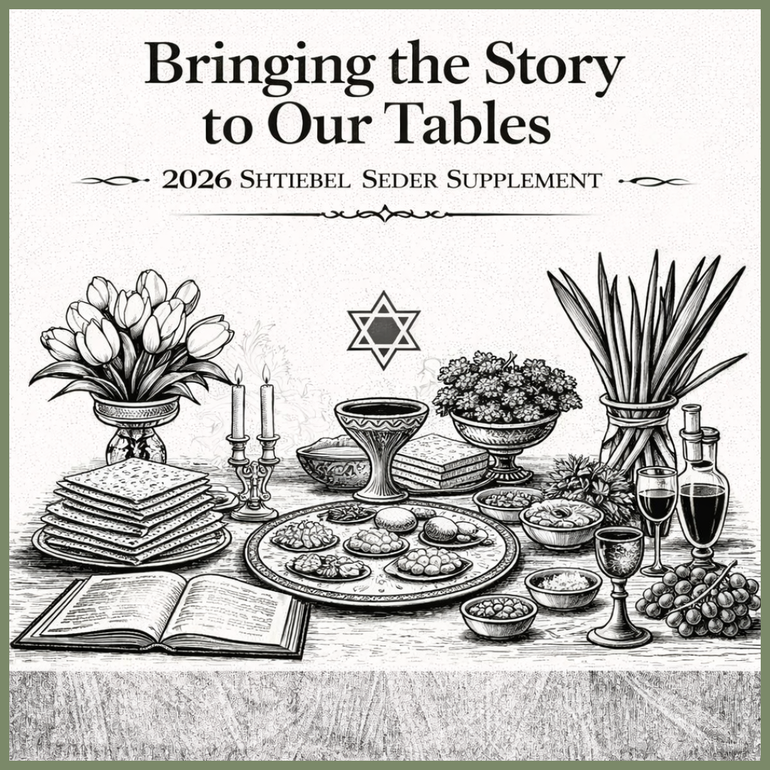 Introducing the first iteration of our Shtiebel Haggadah! Designed to enhance your seder, this family-friendly and accessible haggadah comes filled with contemporary explanations and readings, all in a format that fits easily on your table.